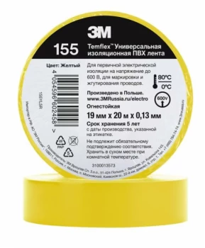 SCOTCH 35 19X20 TAŚMA IZOLACYJNA 19MM 20M WINYLOWA ŻÓŁTY ODPORNA NA WARUNKI ATMOSFERYCZNE
