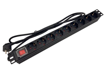 Listwa zasilająca rack 19 cali PDU gniazdo 9 x CEE 7/3 schuko wtyk CEE 7/7 z wyłącznikiem