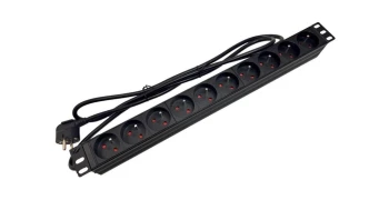 Listwa zasilająca rack 19 cali PDU gniazdo 9 x CEE 7/3 schuko wtyk CEE 7/7 z wyłącznikiem