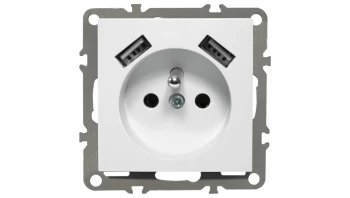 QUADRA GNIAZDKO PODWÓJNE Z UZIEMIENIEM, DO RAMKI SZKLANEJ, W KOLORZE BIAŁYM