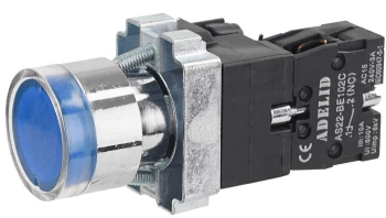Przycisk sterowniczy podświetlany niebieski z metalowym kołnierzem AS22-BW3661L