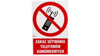Samoprzylepna tabliczka ostrzegawcza /Zakaz używania telefonów komórkowych 200x300/ IP/013/1/C1/F