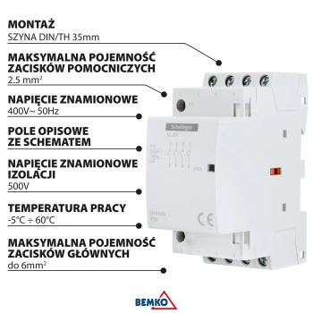 STYCZNIK MODUŁOWY SC201 2P 25A TYP 40 (4NO+0NC) SCHELINGER A62-SC-201-2P-25-40