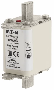 170M2695 WKŁADKA SZYBKA, 32 A, AC 690 V, DIN 00, 30 X 60 X 79 MM, GR, DIN, IEC, POJEDYNCZY WSKAŹNIK