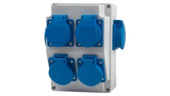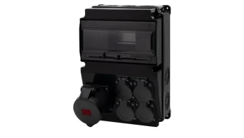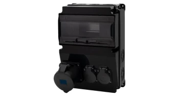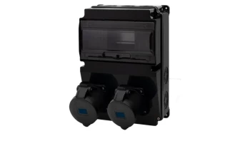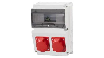 Rozdzielnica R-240 - gniazda 2x16A 5p, 2x230V, przewód OW 5x2,5mm2-1,5m z wtyczką 16A 5p na stelażu plastikowym