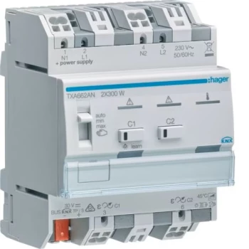 KNX e/s Ściemniacz uniwersalny 2-kan 2x300 W, wielofazowy, f. sumowania obc. TXA662AN