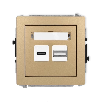 DECO Mechanizm ładowarki USB podwójnej USB C + USB A, 20W max., złoty metalik 8DCUSB-8