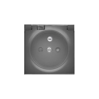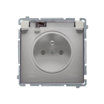 SIMON BASIC MODUŁ SATYNA GNIAZDO 1X Z/U Z KLAPKĄ DYMNĄ IP44 Z PRZESŁONAMI ZACISKI ŚRUBOWE 16A 250V