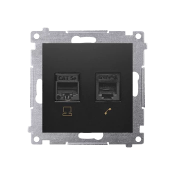 SIMON 54 MODUŁ CZARNY MAT GNIAZDO TELEINFORMATYCZNE 1X UAE 6, 1X UAE 8 CAT.5E UTP PŁASKIE