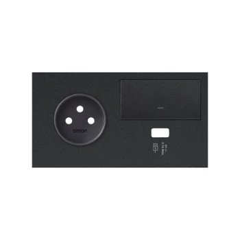 SIMON 100 CZARNY MAT PANEL 2 KROTNY 1X GNIAZDO + 1X KLAWISZ + 1X USB LEWA STRONA