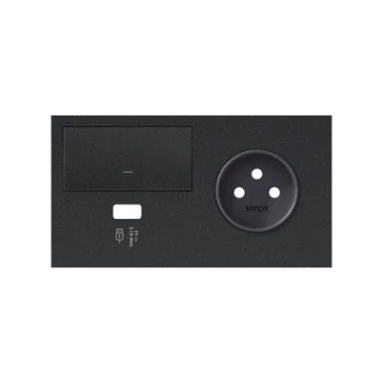 SIMON 100 CZARNY MAT PANEL 2 KROTNY 1X GNIAZDO + 1X KLAWISZ + 1X USB PRAWA STRONA