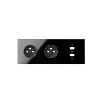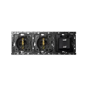 SIMON 100 CZARNY PANEL 3 KROTNY 2X GNIAZDA + 2X 1 USB