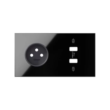SIMON 100 CZARNY MAT PANEL 2 KROTNY 1X KLAWISZ + 1X GNIAZDO Z ZINTEGROWANĄ ŁADOWARKĄ USB