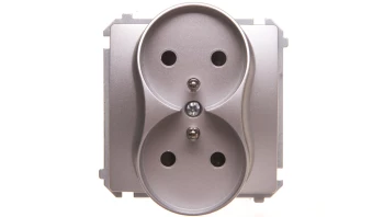 SIMON BASIC MODUŁ SREBRNY MAT GNIAZDO 2X Z/U Z PRZESŁONAMI ZACISKI ŚRUBOWE 16A 250V