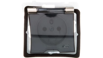AS MODUŁ SATYNA LIGHT GNIAZDO 1X Z/U Z KLAPKĄ DYMNĄ IP44 Z PRZESŁONAMI ZACISKI ŚRUBOWE 16A 250V