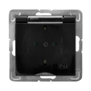 IMPRESJA MODUŁ CZARNY METALIK GNIAZDO 1X SCHUKO Z KLAPKĄ DYMNĄ IP44 Z PRZESŁONAMI ZACISKI ŚRUBOWE 16