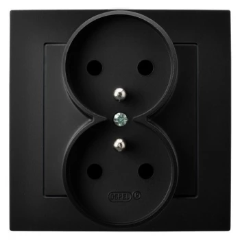 AS CZARNY METALIK GNIAZDO PODWÓJNE Z UZIEMIENIEM KOMPLETNE Z RAMKĄ