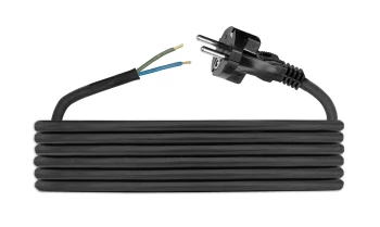 D.3511 CZARNY SZNUR PRZYŁĄCZENIOWY 5.0M GUMA H05RR-F 2X1.5 OKRĄGŁY WTYCZKA PROSTA