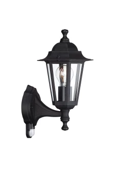 PEKING CZARNY OPRAWA ŚCIENNA KINKIET Z CZUJNIKIEM RUCHU 1X E27/ 60W IP44 ALUMINIUM/ SZKŁO