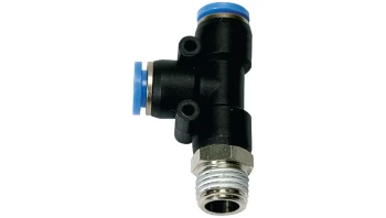 Trójnik wtykowy T obrotowy z tworzywa sztucznego do węża 6, gwint boczny stożkowy R1/4z, 130.014-6