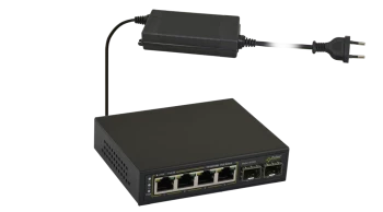 SWITCH 6-PORTOWY SFG64 DO 4 KAMER IP 6 PORTÓW (4XPOE + 2XUPLINK – GNIAZDA SFP); ZASILACZ DESKTOP 230