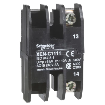 Blok styków z sam. powr., 1 NC, montaż czoł., 30 lub 40mm rozstawu XENC1121