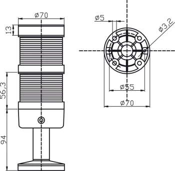 LT70\2-24 KOLUMNA ŚWIETLNA LED FI70 24V DC CIĄGŁY/ BŁYSKOWY/ OBROTOWY CZERWONY/ ZIELONY IP65