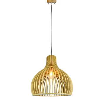 LAMPA WISZĄCA / KLOSZ DREWNO Z CHROMOWANYMI DEKORACJAMI / ŚREDNICA: 450