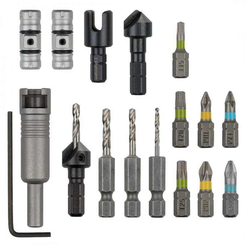 1 "FLIPBIT" - UCHWYT DWUSTRONNY DO MONTAŻU AKCESORIÓW. ZESTAW UNIWERSALNY ALL-IN-ONE, ZAWIERA: WYMIENNE AKCESORIA DO WIERCENIA, FAZOWANIA, WKRĘCANIA