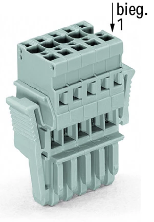 gniazdo 1-przewodowe; CAGE CLAMP®; 4 mm²; raster 5 mm; 10-bieg.; wypust kodujący; boczne zaczepy ryglujące; 4,00 mm²; szary