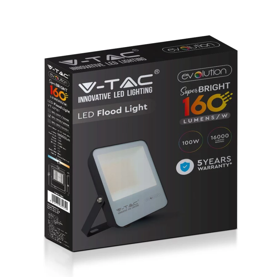 100W NAŚWIETLACZ LED SMD / BARWA:6400K / OBUDOWA: CZARNA / SKUTECZNOŚĆ 160LM/W