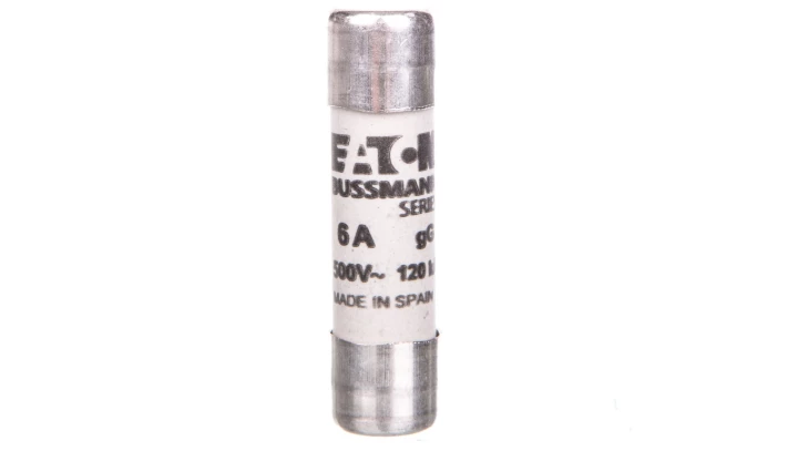 Wkładka cylindryczna 10 x 38 mm 6A GG 500V AC CYLINDRICAL FUSE 10 x 38 6A GG 500V AC o numerze katalogowym C10G6 w kategorii Wkładki bezpiecznikowe cylindryczne 10x38, Wkładki bezpiecznikowe cylindryczne. Produkt wyprodukowany przez markę EATON, seria CG.