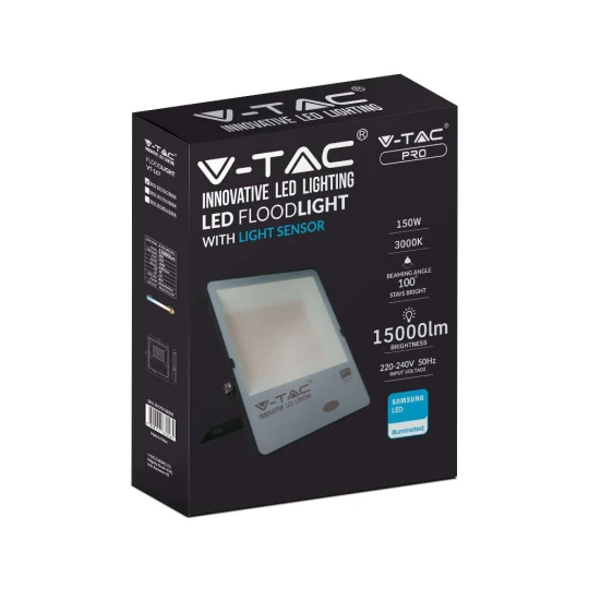 150W NAŚWIETLACZ LED SMD Z CZUJNIKIEM ZMIERZCHU / CHIP SAMSUNG / BARWA:3000K / OBUDOWA: CZARNA/ SKUT