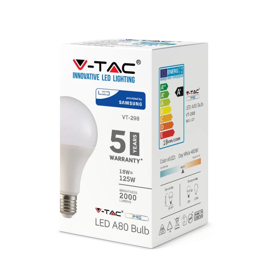 18W A80 ŻARÓWKA LED / CHIP SAMSUNG / BARWA:6400K / TRZONEK:E27