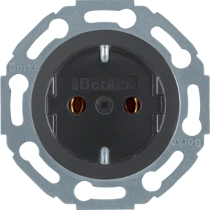 Simon Basic Gniazdo wtyczkowe z uziemieniem Schuko (moduł) z przesłonami torów prądowych, zaciski śrubowe czarny BMGSZ1Z.01/49