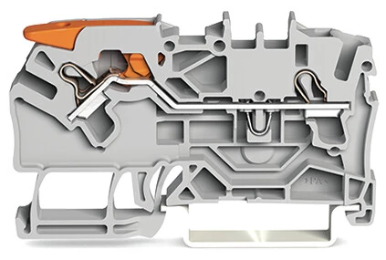 złączka przelotowa 2-przewodowa; z dźwignią i Push-in CAGE CLAMP®; 2,5 mm²; z otworem pomiarowym; opis z boku i na środku; na szynę TS 35 x 15 i 35 x 7,5; Push-in CAGE CLAMP®; 2,50 mm²; szary
