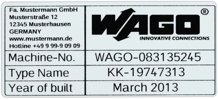 tabliczka znamionowa; 70 x 33 mm; srebrny