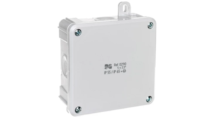 Puszka 2K IP55 / IP65 98x98x46,, 4xPG 13,5, Szara o numerze katalogowym 0290-80 w kategorii Puszki natynkowe, Puszki instalacyjne. Produkt wyprodukowany przez markę ELEKTRO-PLAST NASIELSK, seria 2K.