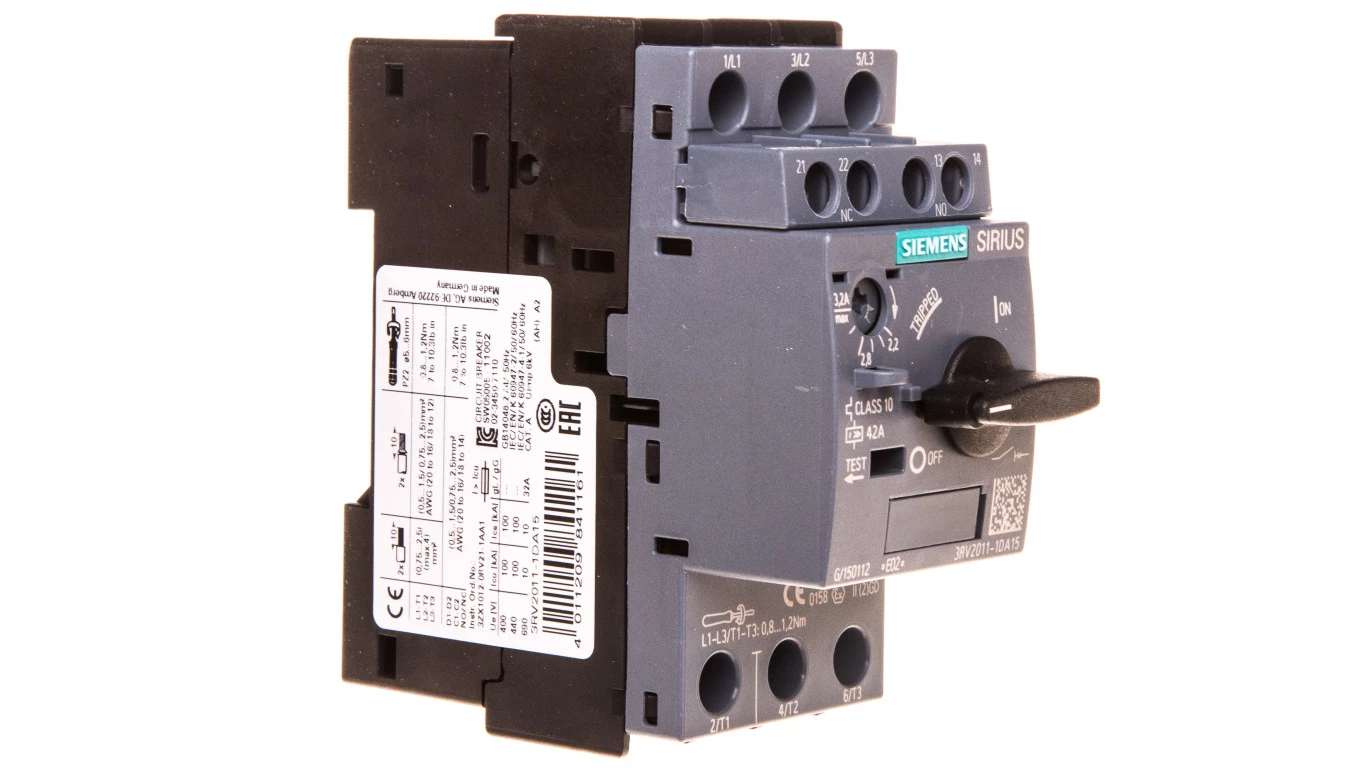 3RV 3.2 WYŁĄCZNIK SILNIKOWY TERMOMAGNETYCZNY 2.2-3.2A 3Z 1Z+1R 2.5M 100KA OBROTOWY ZACISKI ŚRUBOWE