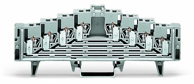 złączka krosowa 4-piętrowa; bez zatrzasków; jeden potencjał na każdy poziom; z otworem pomiarowym Ø 2,3 mm; na szynę TS 35 x 15; 1,5 mm²; szary