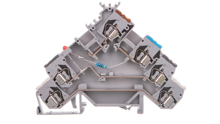 Złączka szynowa 3-przewodowa z LED 2,5mm2 do elementów wykonawczych typu PNP szara 270-572/281-434 /50szt./