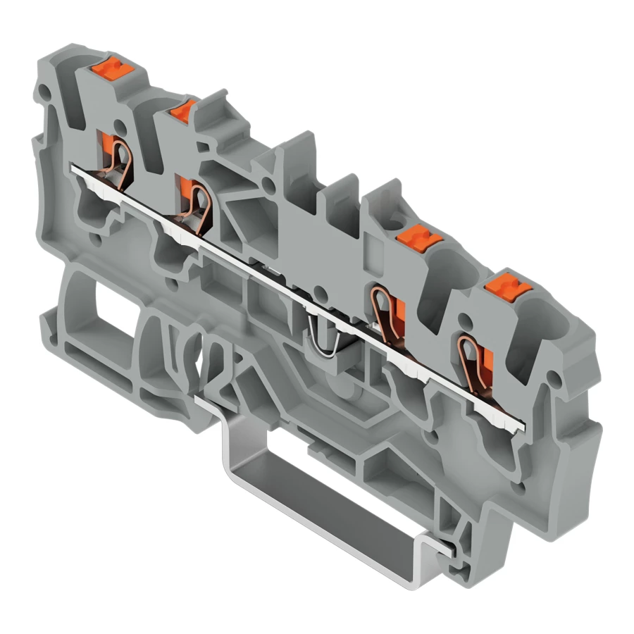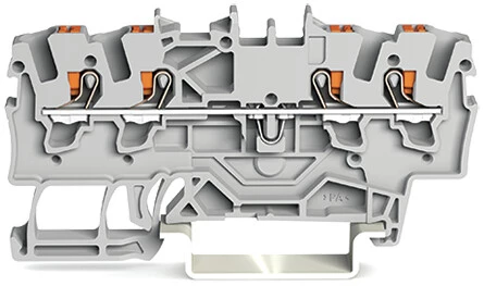 złączka przelotowa 4-przewodowa; z przyciskami; 1,5 mm²; z otworem pomiarowym; opis z boku i na środku; na szynę TS 35 x 15 i 35 x 7,5; Push-in CAGE CLAMP®; 1,50 mm²; szary