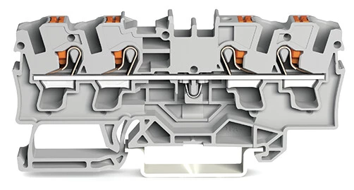 złączka przelotowa 4-przewodowa; z przyciskami; 4 mm²; z otworem pomiarowym; opis z boku i na środku; na szynę TS 35 x 15 i 35 x 7,5; Push-in CAGE CLAMP®; 4,00 mm²; szary