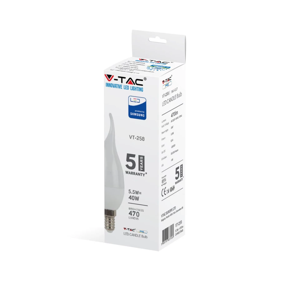 5.5W CF37 ŻARÓWKA LED / KLOSZ - PŁOMIEŃ / CHIP SAMSUNG / BARWA:4000K / TRZONEK:E14