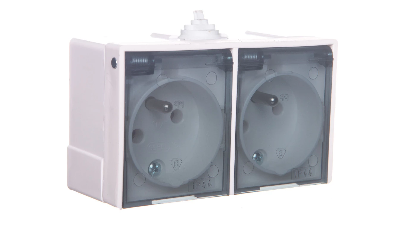 HYDRO Gniazdo hermetyczne podwójne z/u IP44 z klapką dymną białe 121436