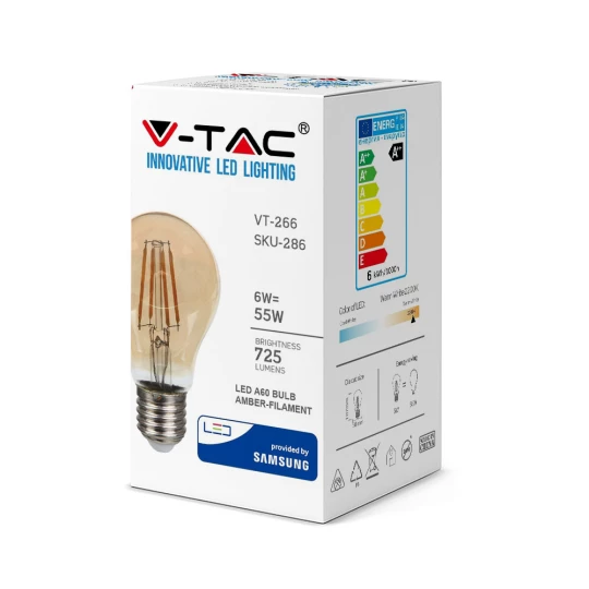 6W A60 ŻARÓWKA LED FILAMENT / KLOSZ BURSZTYNOWY / CHIP SAMSUNG / BARWA:2200K / TRZONEK:E27