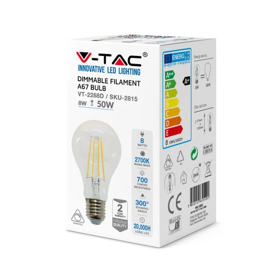 8W A65 ŻARÓWKA LED FILAMENT / BARWA:3000K / ŚCIEMNIANA / TRZONEK:E27
