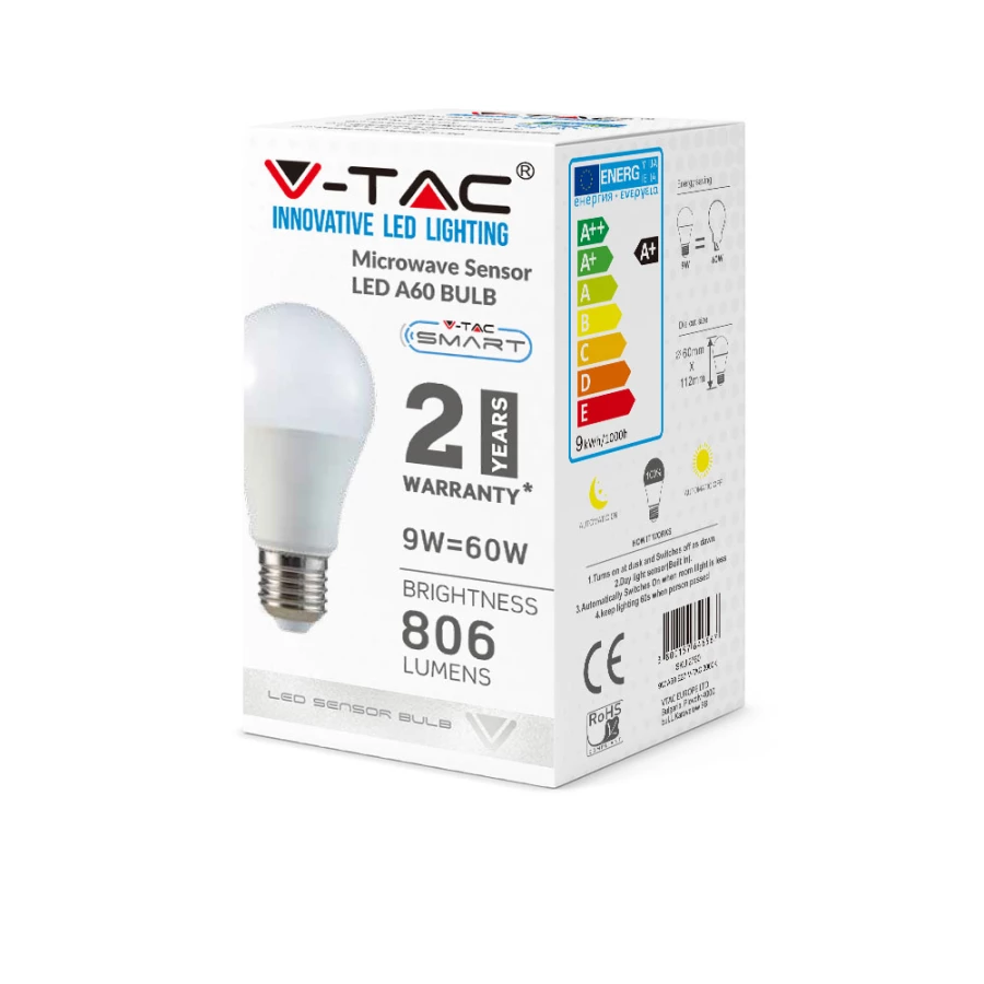 9W A60 ŻARÓWKA LED Z CZUJNIKIEM MIKROFALOWY / BARWA:6400K / TRZONEK:E27