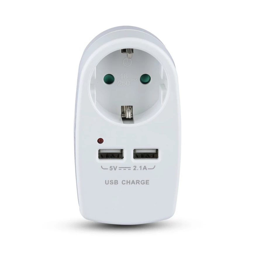 ADAPTER DO GNIAZDA Z ŁADOWARKA USB 16A+2.1A / BIAŁY
