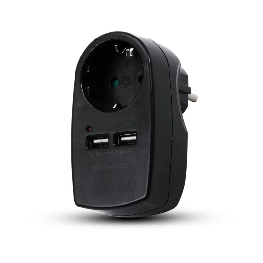 ADAPTER DO GNIAZDA Z ŁADOWARKA USB 16A+2.1A / CZARNY